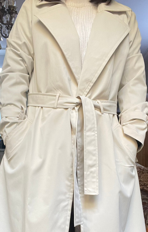 این بارونی آسترداره و کمربند هم داره که مناسب پاییز زمستون و اول بهاره و پشت آن جلیقه داره که دکمه های پرچی خورده